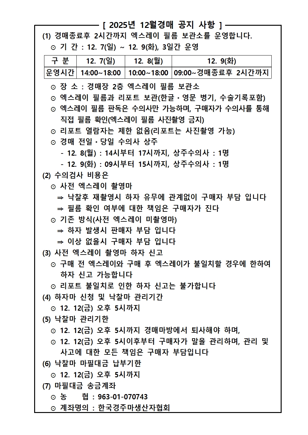 '25년 12월(1세마) 경매시행 공고