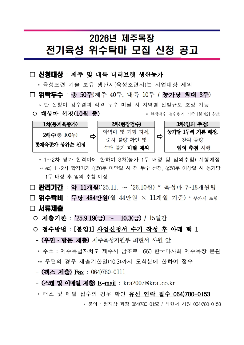 (한국마사회) '26년 전기육성 위수탁사업 운영 알림