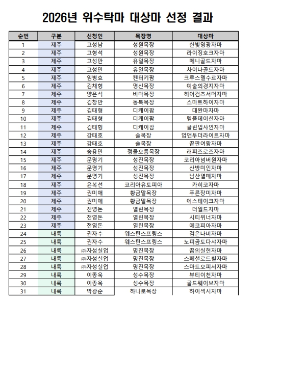 (한국마사회) '26년 전기육성 위수탁사업 대상마 알림